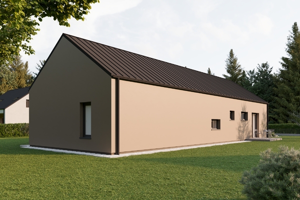 Model B 10 ponúka premyslený pôdorys v úzkom, podlhovastom tvare, ktorý výborne zapadne aj na užšie pozemky.