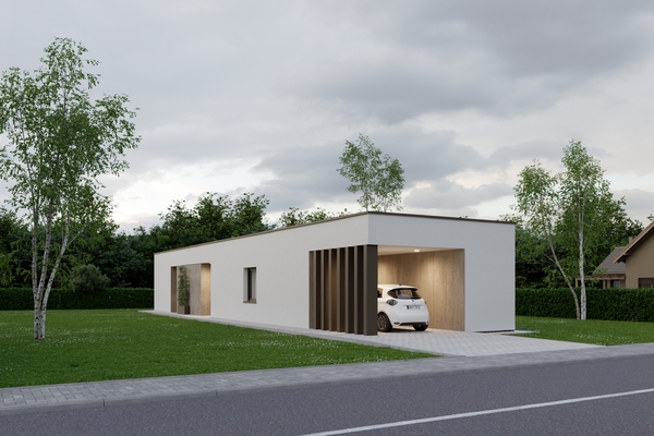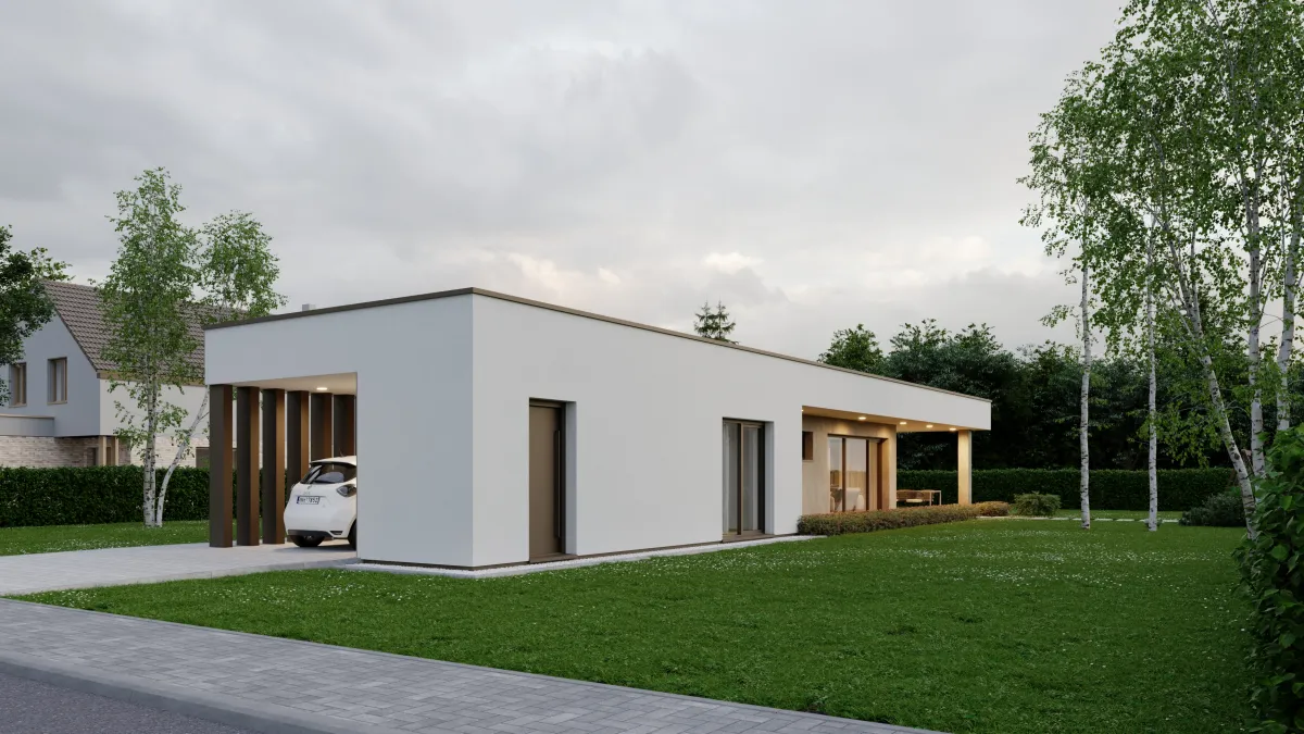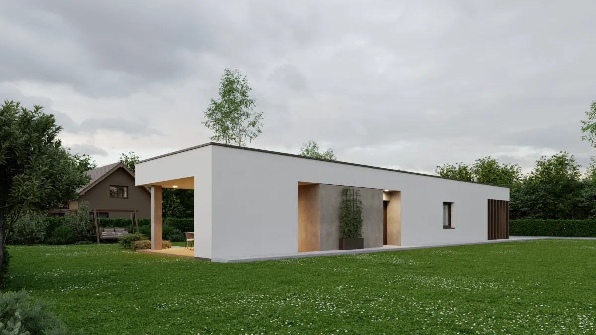 Svojím vzhľadom pôsobí B16 čisto, moderne a nenápadne, no zároveň veľmi štýlovo. Ak hľadáte dom, ktorý umožní komfortné bývanie v menšej metrike a zároveň ponúkne príjemné prepojenie s exteriérom, B16 je správna voľba pre pokojný život aj víkendový relax.